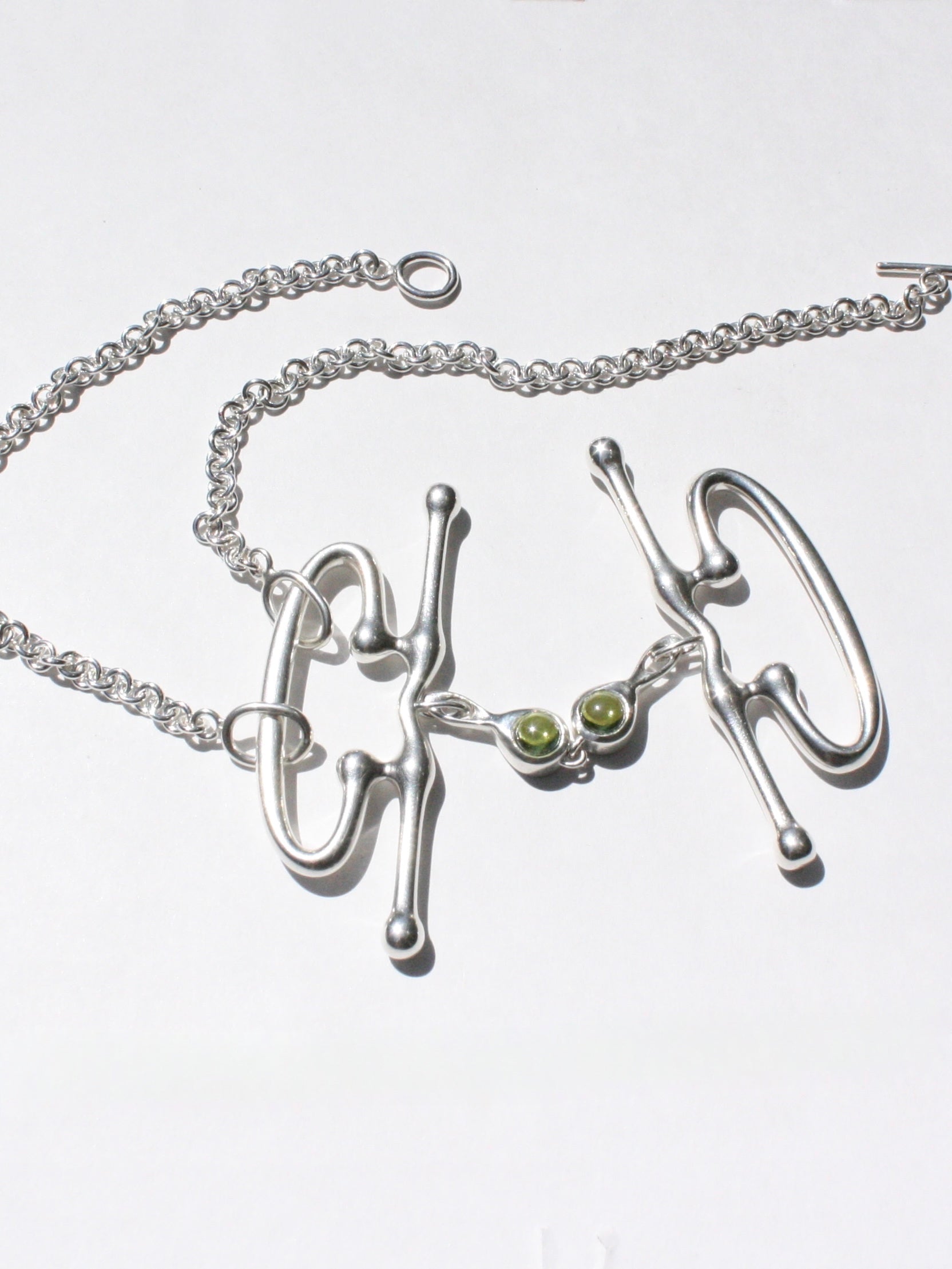 Sterling silver necklace with two stones of your choice. Please allow 8-12 weeks production time.