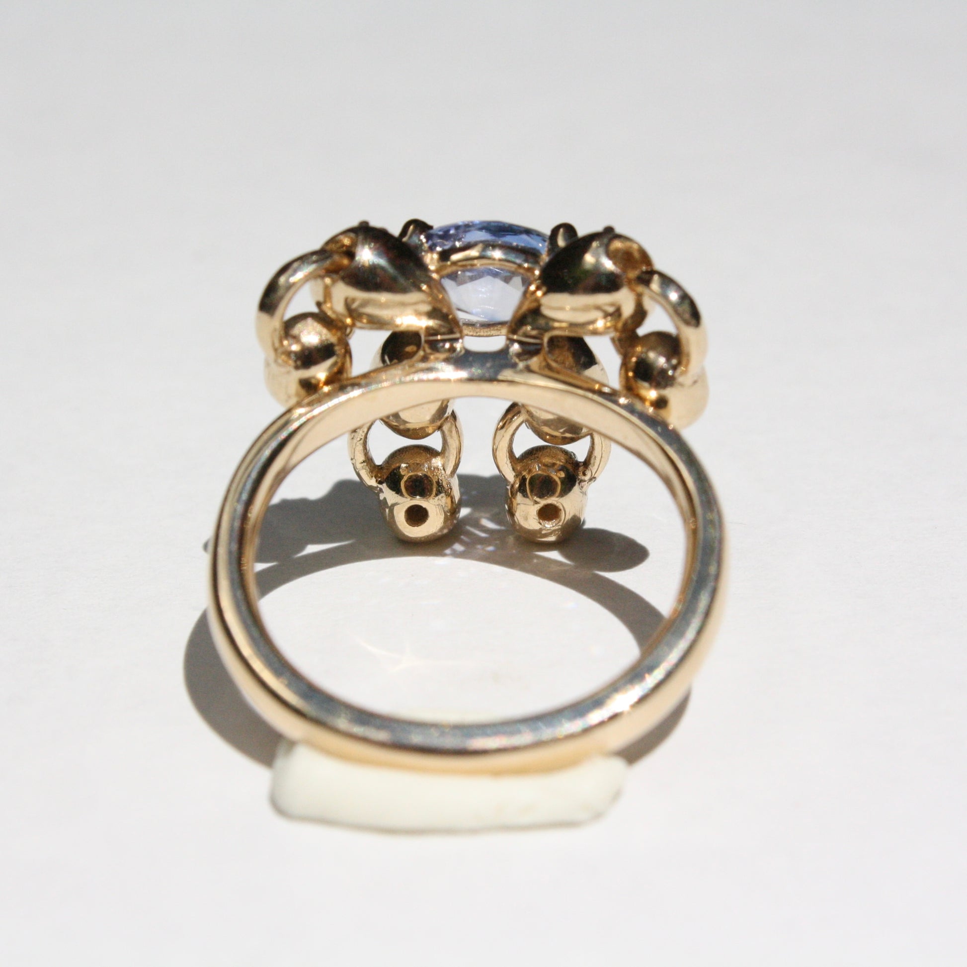 Made-to-order 14k gold ring with a central sapphire and surrounding diamonds. Upon ordering, I will reach out to you to get started on the stone sourcing process. Please leave a comment at checkout that includes your ring size and any stone color preferences that you may have. Please note that an additional invoice may be required depending on your final stone choice, but I will be transparent on the stone costs during the process.